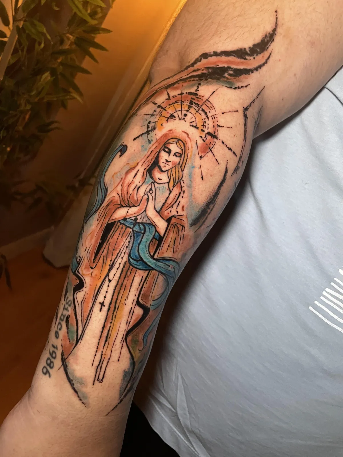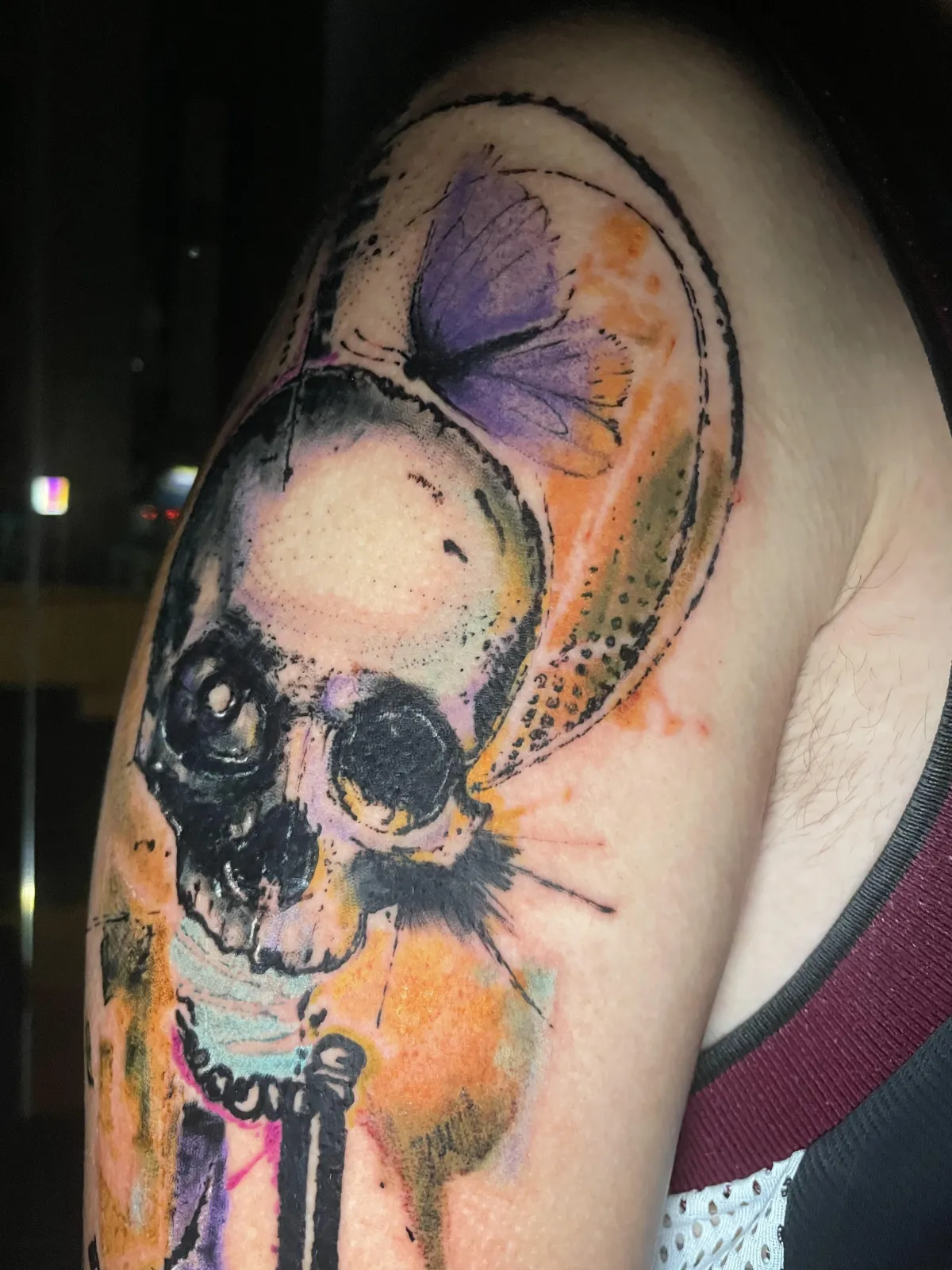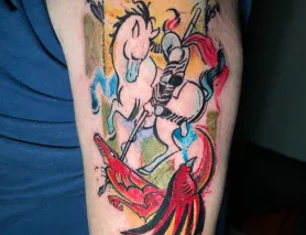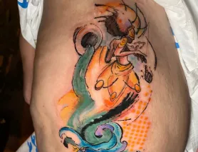 "Jotavê é um artista incrível e um profissional maravilhoso. Desde o início escutou com atenção o que eu queria, se preocupou com a arte, tanto o desenho como as cores, e como ela encaixaria na minha anatomia. A tatuagem ficou incrível! Recomendo de olhos fechados. Assim que possível pretendo fazer outras."